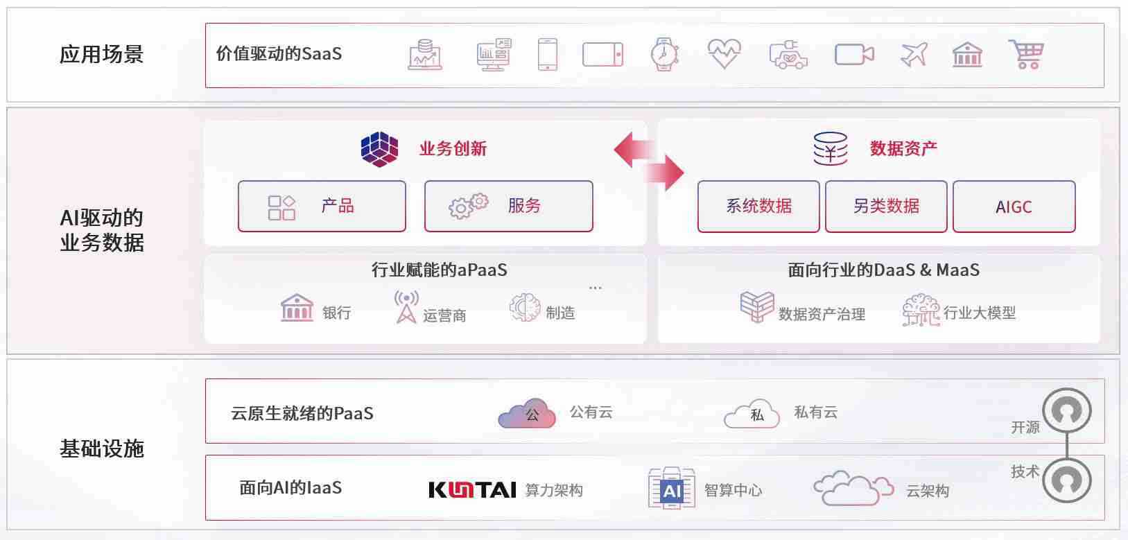 数字时代,,,围绕企业数字化转型的关键要素,,,,金年汇数码开创性的提出数云融合战略和技术体系框架,,着力在云原生、、、数字原生、、、AI原生和信创产业上架构产品和服务能力,,为处在不同数字化转型阶段的快消零售、、汽车、、金融、、医疗、、、政企、、、、教育、、、、运营商等行业客户提供泛在的敏捷IT能力和融合的数据驱动能力,,,构建跨界融合创新的数字业务场景和新业务模式,,,,助力企业级客户建立面向未来的核心能力和竞争优势,,全面推动社会的数字化、、智能化转型升级。。。。